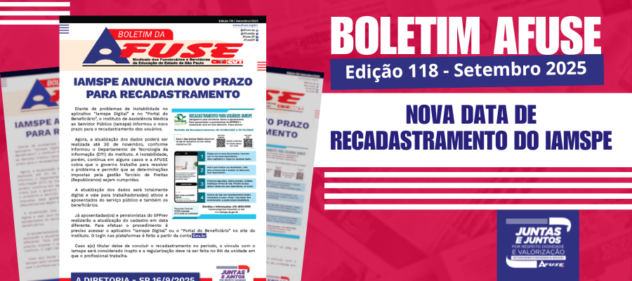 A direção da AFUSE reuniu-se nesta segunda-feira (6) com representantes do governo do estado de São Paulo para discutir o novo Plano de Carreira...