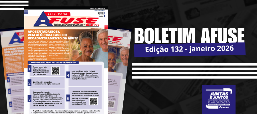 A AFUSE inicia 2026 com a lembrança de que o recadastramento para aposentadas(os) filiadas(os) ao sindicato é obrigatório. O governo de São Paulo tem...